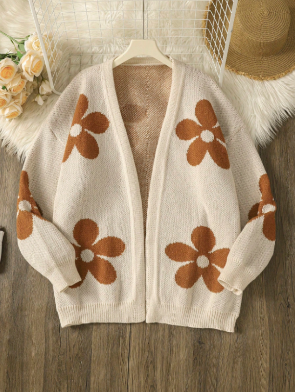 کاردیگان بافتنی گلدار جاکارد سایز پلاس (Plus Size)