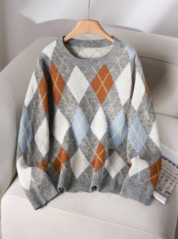 ژاکت بافت زنانه سایز بزرگ با طرح لوزی آرجایل