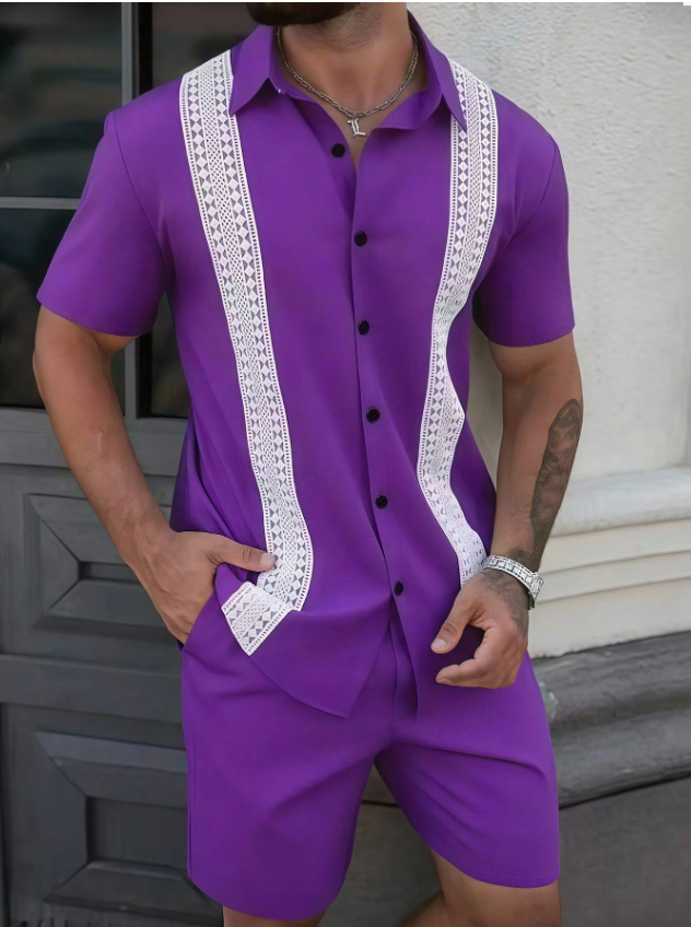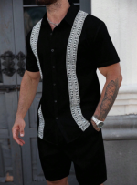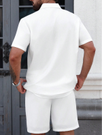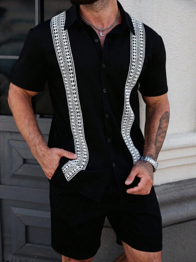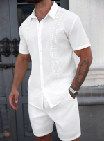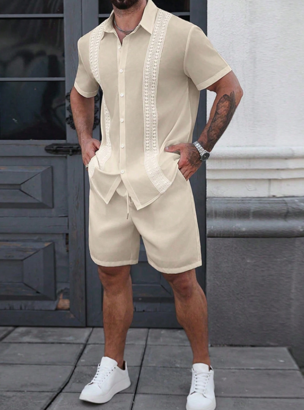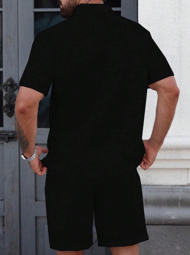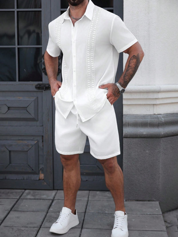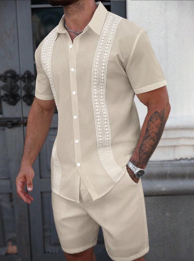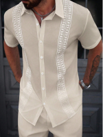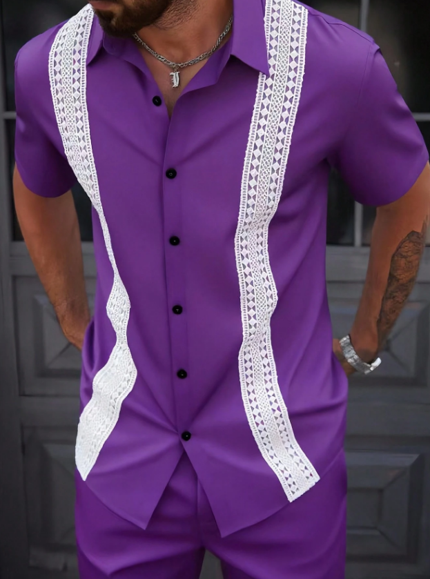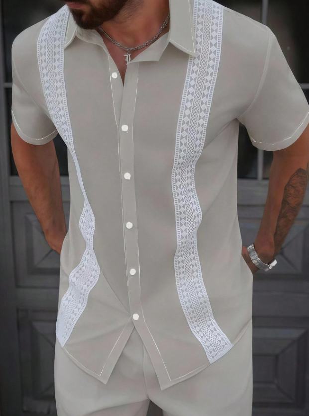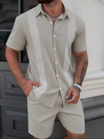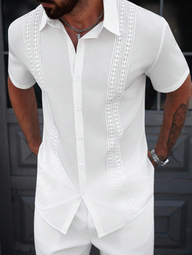 «پیراهن مردانه Manfinity CasualCool – رنگ یکدست با تزیینات توری متفاوت، یقه تکسینه، مناسب تابستان»