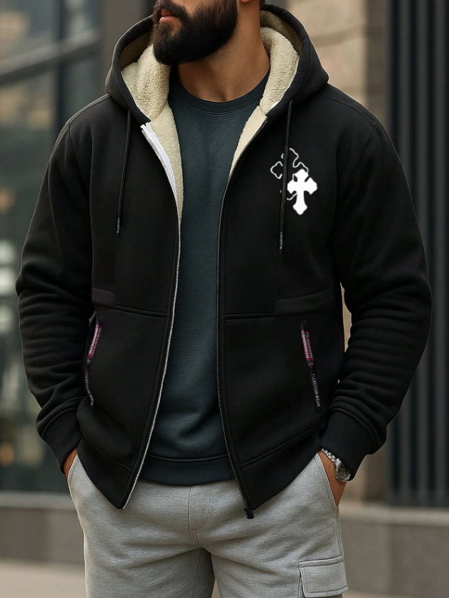 ژاکت زیپدار مردانه با کلاه و آستر گرم – مناسب پاییز و زمستان