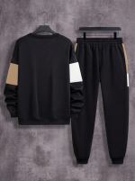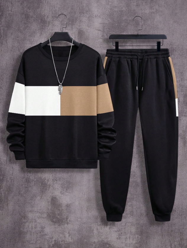 شامل سوییشرت و شلوار گرمکن با طراحی پچورک (Patchwork) و ترکیب رنگهای متضاد، که ظاهری مدرن و اسپرت ایجاد میکند. facebook.com+2m.shein.com+2